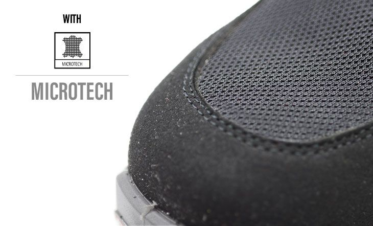 MICROTECH ei ole vain vedenkestävä – se on myös hengittävä, hankausta kestävä ja naarmuuntumaton, mikä tekee kengästä yhtä aikaa kevyen ja kestävän.