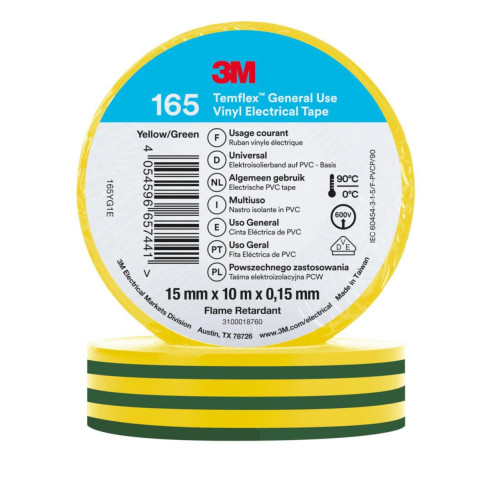 - Sähköteippi 3M 165 Temflex 15 mm X 10 m, keltavihreä